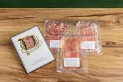 スライスしたての新鮮な生ハムを個別に真空パックしてお送りします。